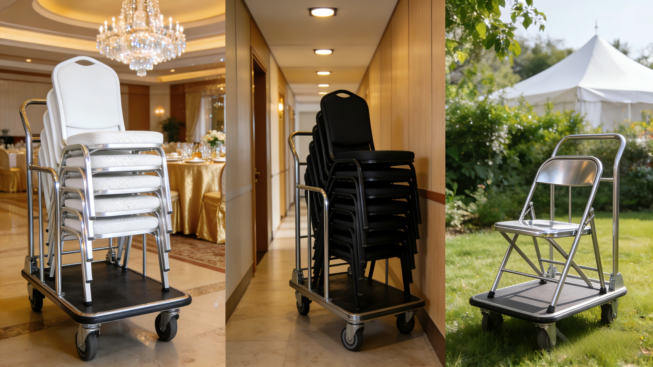 Streamline your banquet setup with our premium hotel chair transport carts. Move stacks of chairs safely & effortlessly with durable, space-saving designs. Perfect for hotels, conference centers, and event venues. Shop durable chair trolleys today!