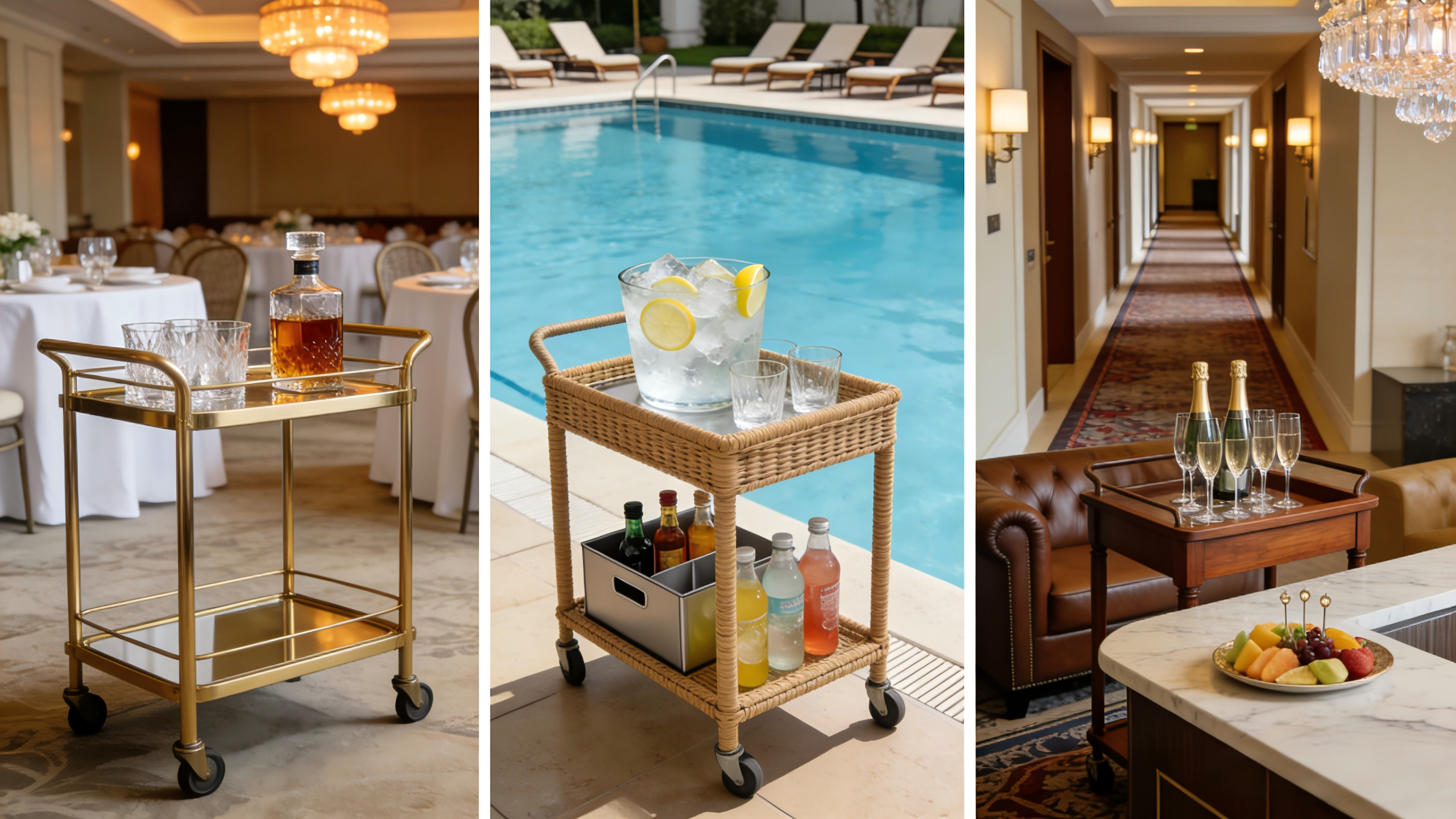 Elevate your in-room dining experience with our premium hotel dining carts. Features include noise-reducing casters, sturdy folding shelves, and elegant finishes that complement your hotel’s image. Perfect for seamless room service and banquet operations.