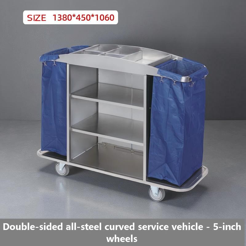 Introducing the Aukron AB25 – a robust and elegantly designed service cart that combines the strength of full stainless steel construction with the safety and style of a smooth curved arc frame. Featuring practical double-sided access, whisper-quiet wheels, and a durable all-steel body, this cart is engineered for daily use in busy hotels, healthcare facilities, catering services, and commercial venues where hygiene, safety, and quiet operation are paramount.