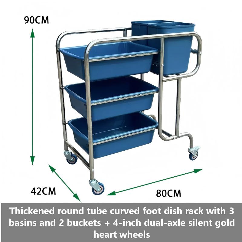 Comes equipped with three removable bins for sorting dishes, glassware, and cutlery, plus two buckets for liquid waste or cleaning supplies—everything you need in one organized unit.